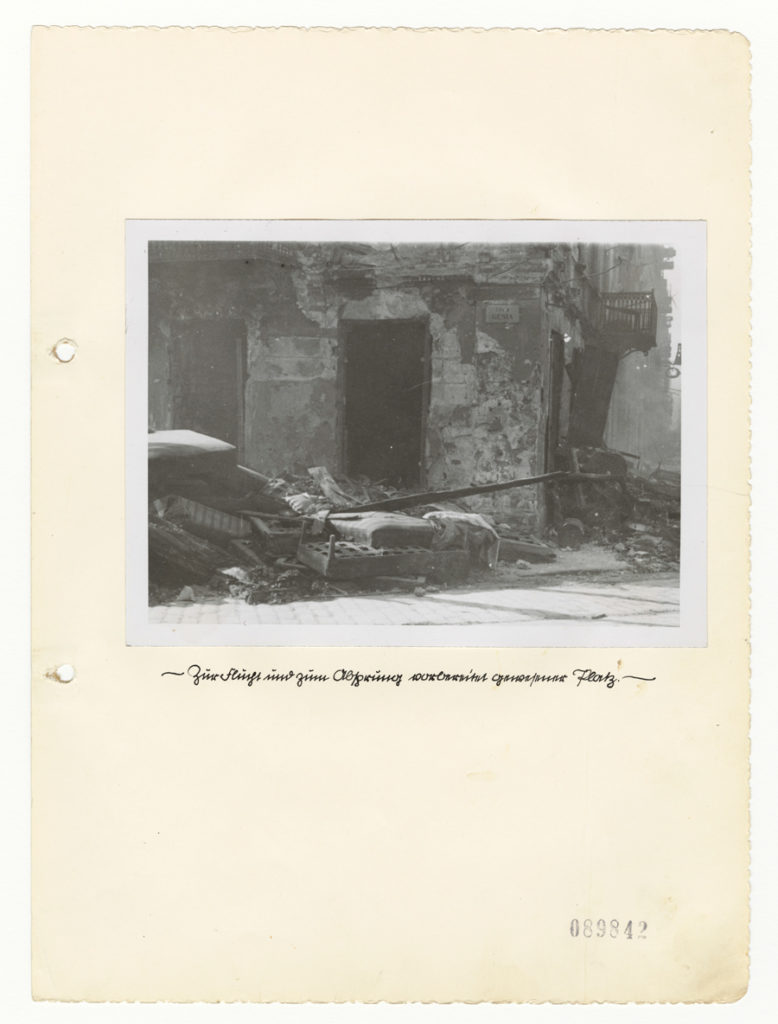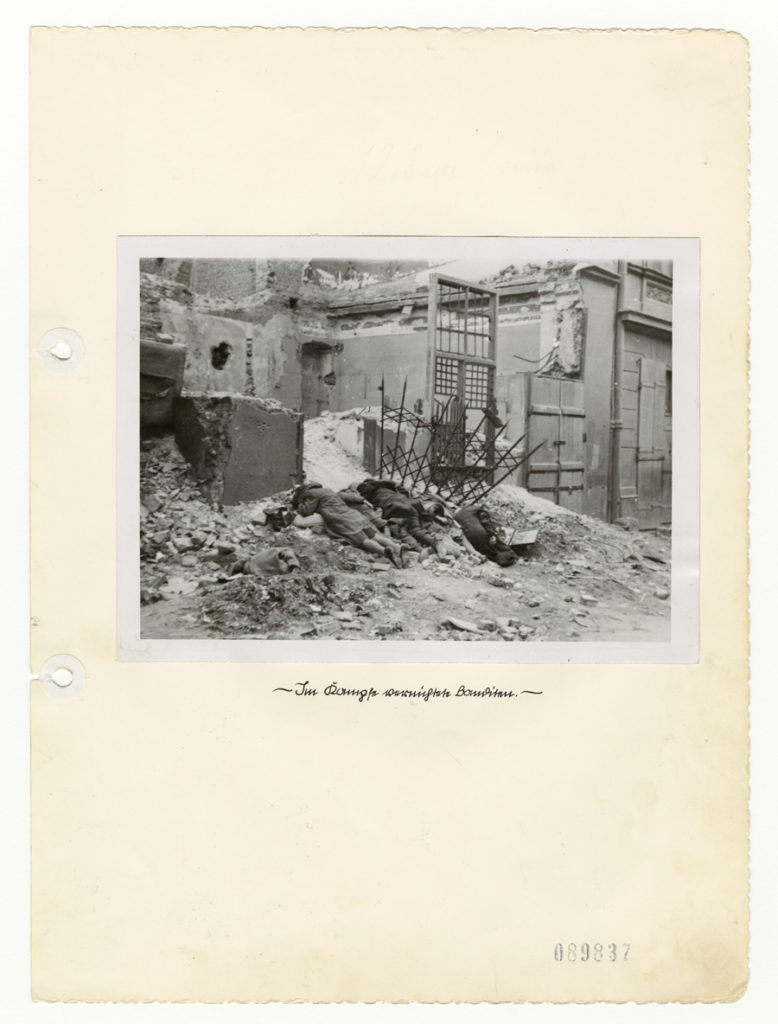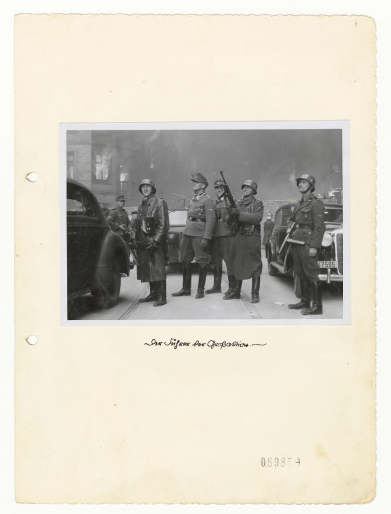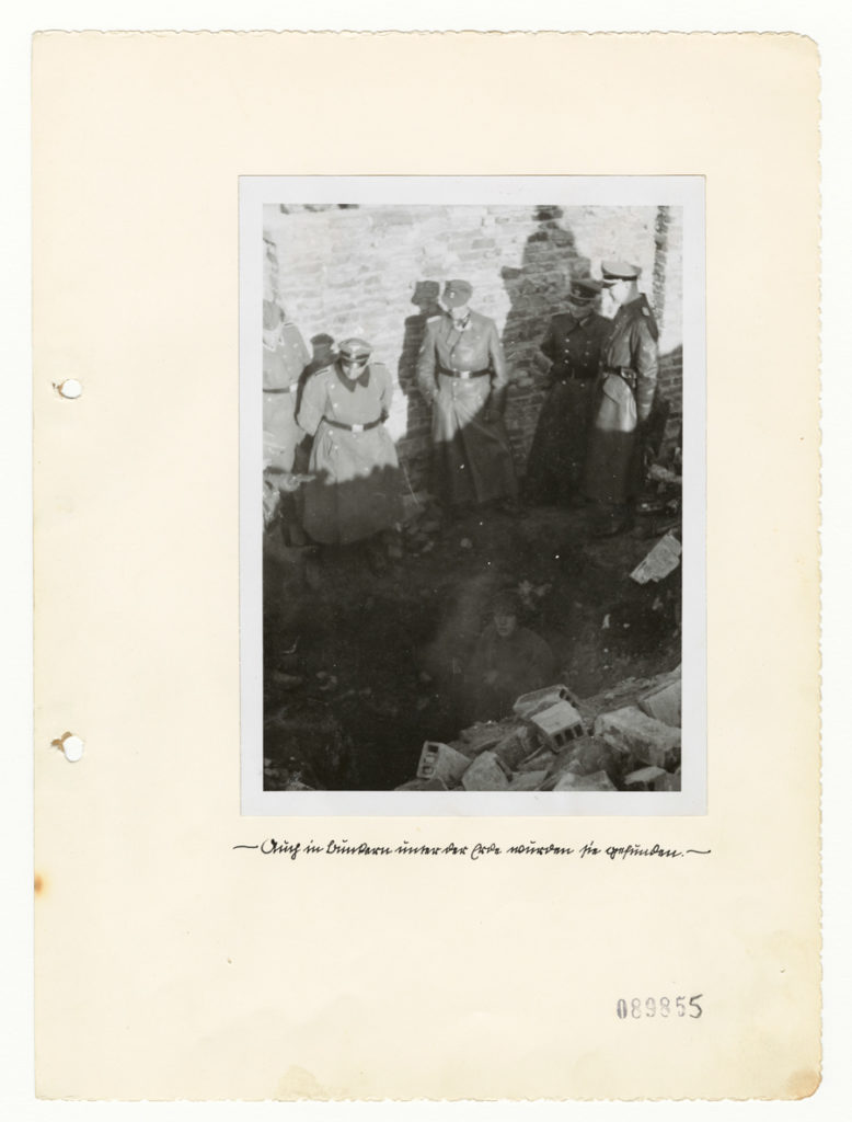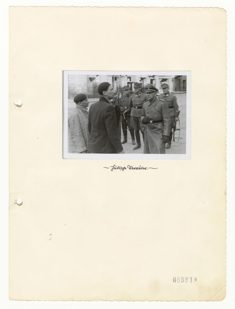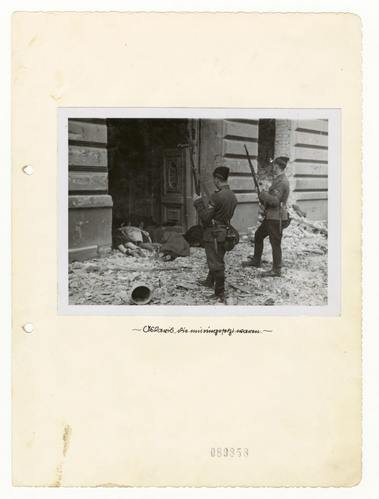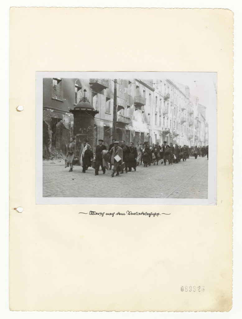 En mai 1943, le Waffen‐SS Jürgen Stroop, commandant des forces allemandes qui liquidèrent le ghetto de Varsovie, produit un rapport écrit de 75 pages titré "Il n'y a plus de quartier juif à Varsovie". Commandé par Friedrich‐Wilhelm Krüger, chef suprême de la SS et de la police en Pologne, et conçu comme un album‐souvenir pour Heinrich Himmler, ce rapport se compose de trois parties : un résumé des opérations menées par les SS, une collection de tous les communiqués quotidiens envoyés à Krüger, auxquels s’ajoute un « rapport photographique » d’une cinquantaine de pages comportant des dizaines de photos.
