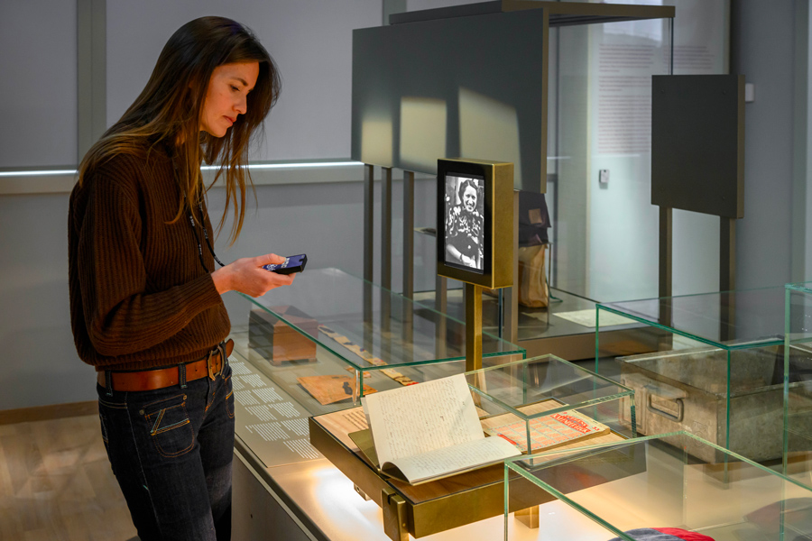 Plutôt qu’une frise historique, les scénographes ont choisi de tapisser de manière chronologique les murs d’ordonnances, de décrets et d’actions à l’encontre des Juifs hollandais. C’est l’un des rares défauts de ce nouveau musée : trop de textes qui mélangent les lois et les événements, des caractères trop petits et les pans de murs noircis de petits caractères ne donnent pas envie de s’y plonger. L’intégration de quelques œuvres d’art contemporaines paraît un peu forcée et n’apporte pas grand‐chose au message puissant véhiculé ici.