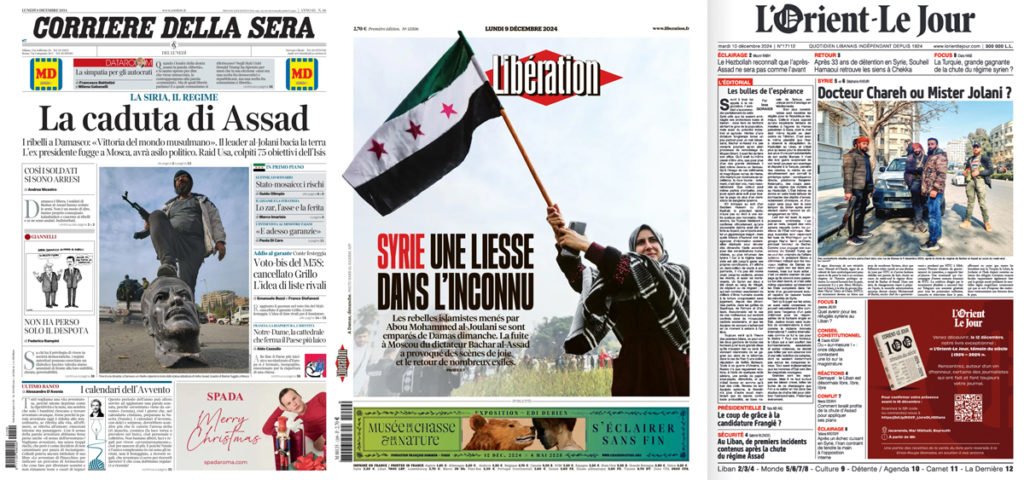 On retrouve le même constat inquiet sous la plume de Jean-Philippe Rémy, correspondant du Monde à Jérusalem : “Le régime de Bachar Al-Assad, affaibli, présentait des avantages pour Israël, permettant à l’État hébreu d’y intervenir pour des frappes aériennes contre des intérêts, des personnes ou des installations militaires du Hezbollah, de l’Iran ou de leurs alliés au sein des milices chiites, avec une liberté d’action presque complète. À cet ennemi faible, mais utile, succède à présent une plongée dans l’inconnu”.